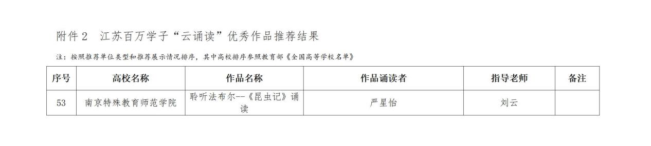 同时,在“江苏百万学子‘云诵读’”活动中,严星怡同学的作品《聆听法布尔—<昆虫记>诵读》以清晰的咬字、饱满的情感与出色的艺术感染力,成功入选优秀作品名单。