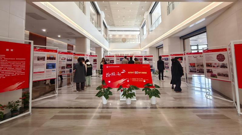 2025年是南京特殊教育师范学院开展本科教育十周年之年。12月2日,恰逢学校第43个校庆日,由校党委宣传部、党委办公室、档案馆共同主办的本科办学十周年回顾展在实验实训大楼一楼大厅开展,展览以“拾级而上”为主题,以时间为轴、事件为点、专题为面,通过“奋进之路”和“数说十年”两个篇章,全景呈现学校本科办学十年的发展历程、办学成果与育人成效。