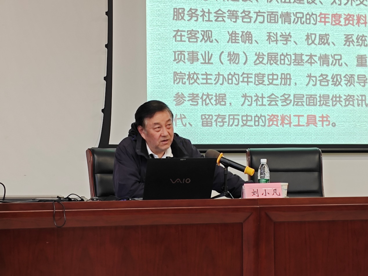 刘小凡以“年鉴条目编写实践及常见问题处理”为题,结合学校年鉴编纂实际进行系统讲解。他首先明确了院校年鉴的基本定位与核心特性,指出院校年鉴是逐年编纂、连续出版的资料性工具书,需紧扣年度性、资料性、工具性三大核心,重点记载学校人才培养、科学研究、学科建设、队伍建设等教育事业发展的基本情况与重大事件。刘小凡结合具体案例,详细阐述了年鉴选材“大事、要事、新事、特事”的四大标准,以及条目标题拟定、内容撰写的规范要求,强调编纂过程中要做到要素齐全、数据准确、文风朴实,用事实和数据说话,杜绝空话套话、主观评价与预测性内容。同时,他还就年鉴编纂中的政治规范、禁用词使用、标点符号标准、数字单位统一等易错点进行重点提醒,对重大负面事件的客观记述原则、内容交叉重复规避、检索系统与英文目录设置等实操要点提出针对性建议。