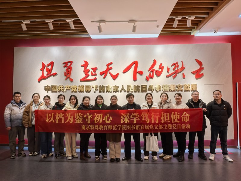 3月19日下午,图书馆直属党支部组织全体党员和入党积极分子前往南京市档案馆开展主题党日活动,在历史档案与红色展陈中接受思想洗礼、强化使命担当。